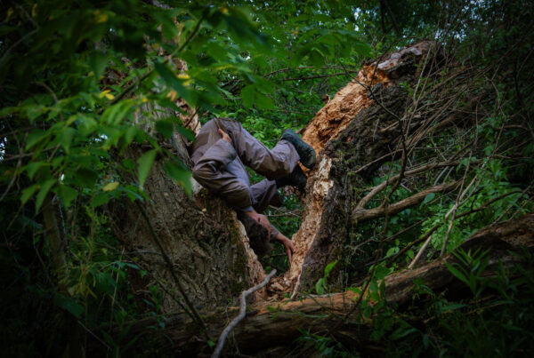 The BodyCartography collective is traveling the world (before the Polish shows, the project was conducted in Norway, New Zealand, Estonia, Sweden, and Cyprus, among other places), reflecting on the climate crisis, understood as an identity crisis. The performance in Warsaw took place on the banks of the Vistula River, on the Miedzeszyński Embankment side. The nearly three-hour event was divided into three parts, during which we were invited to various forms of contemplation of nature.