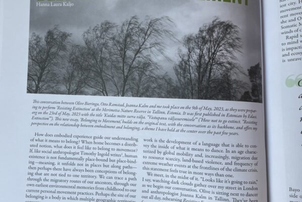 Each version of “Resisting Extinction” was set in the specific space in which it was presented. Before the Warsaw performance, the performers also prepared with the help of botanists and scientists, who led nature walks and spoke about specific species inhabiting the Vistula’s oxbow lake. This thread, which emerged in the post-performance conversations, was most interesting to me.